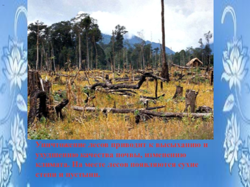 почвы, изменению климата. На месте лесов появляются сухие степи и пустыни.