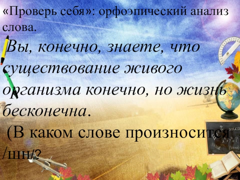 Слайд 3«Проверь себя»: орфоэпический анализ слова.