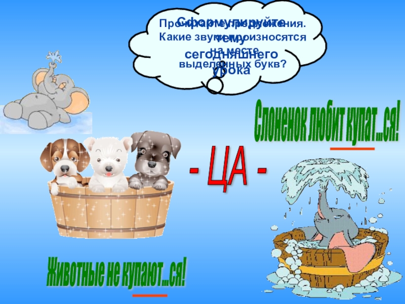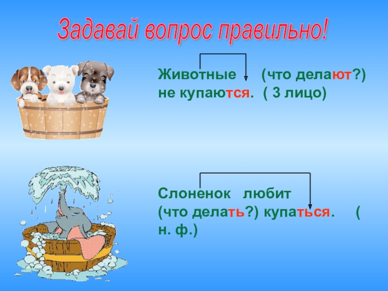 Слоненок любит (что делать?) купаться. ( н. ф.)