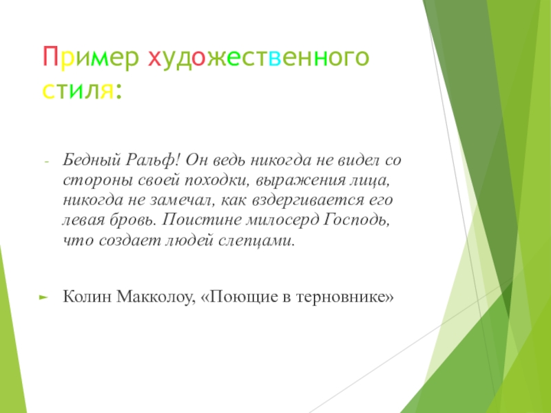 Слайд 18Пример художественного стиля: