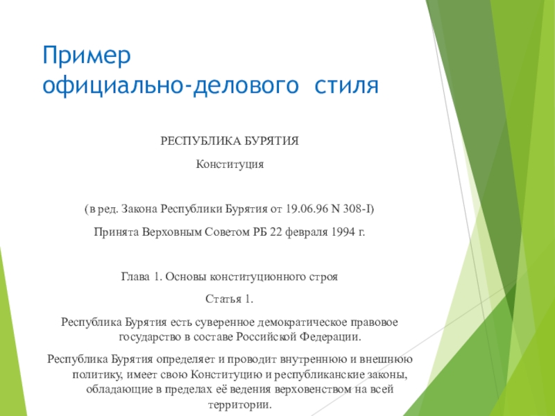 Республика Бурятия есть суверенное демократическое правовое государство в составе Российской Федерации.