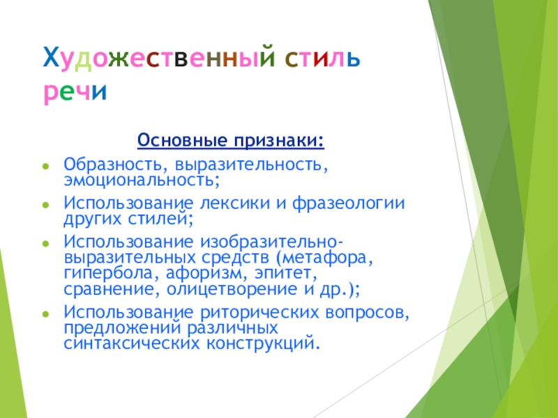 Слайд 16Художественный стиль речи