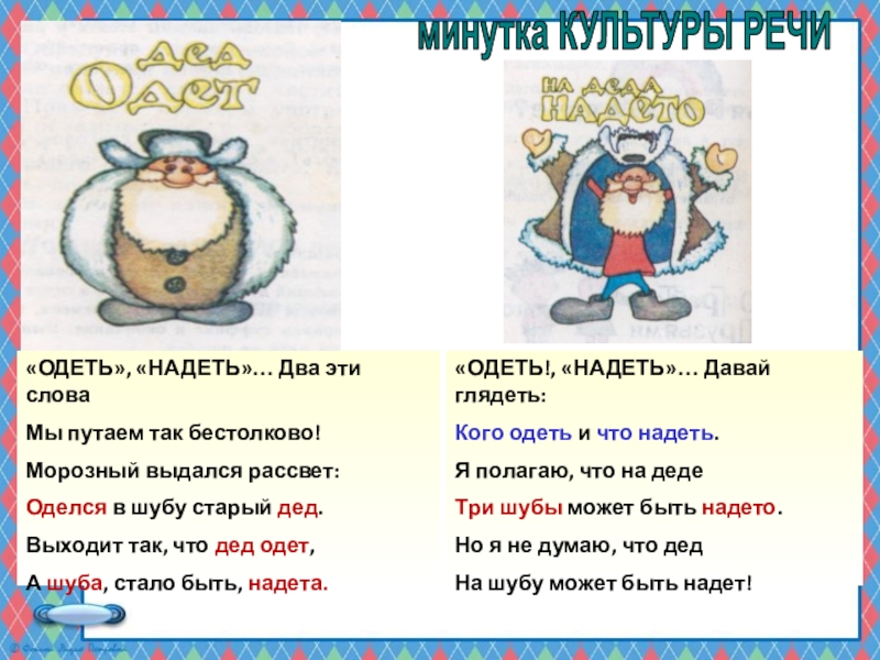 «ОДЕТЬ!, «НАДЕТЬ»… Давай глядеть: