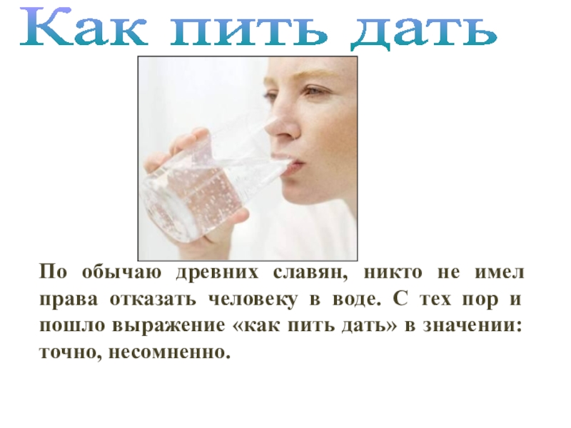 воде. С тех пор и пошло выражение «как пить дать» в значении: точно, несомненно.