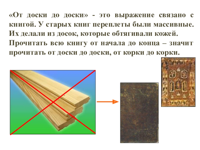 Слайд 8«От доски до доски» - это выражение связано с книгой. У