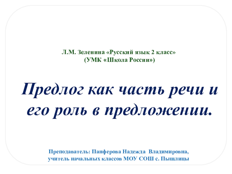 учитель начальных классов МОУ СОШ с. Пышлицы
