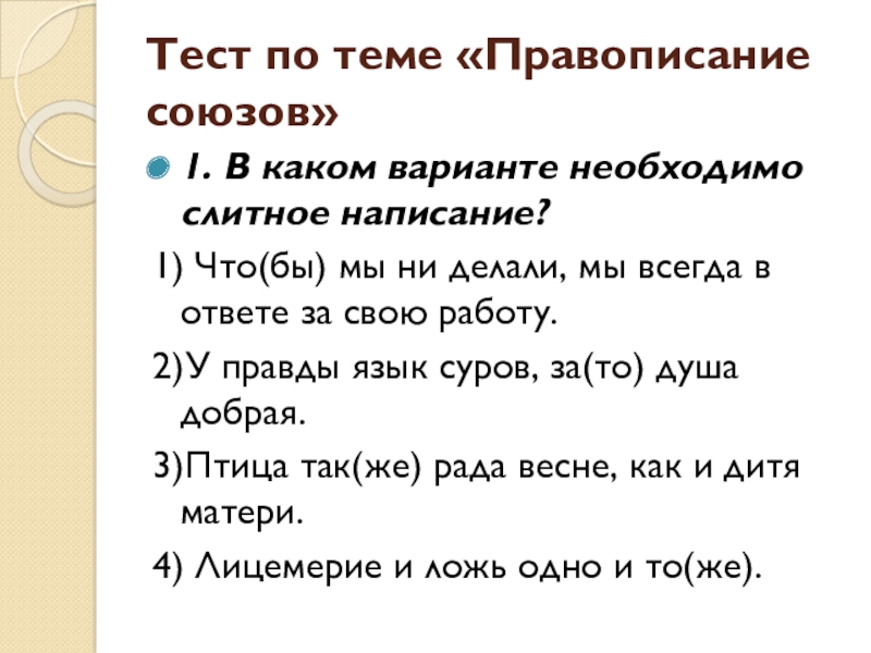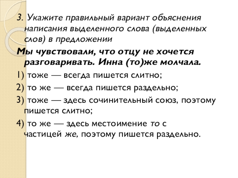 Слайд 303. Укажите правильный вариант объяснения написания выделенного слова (выделенных слов) в