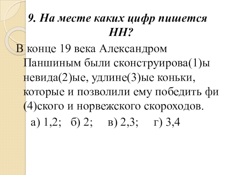 Паншиным были сконструирова(1)ы невида(2)ые, удлине(3)ые коньки, которые и позволили ему победить фи(4)ского и норвежского скороходов.