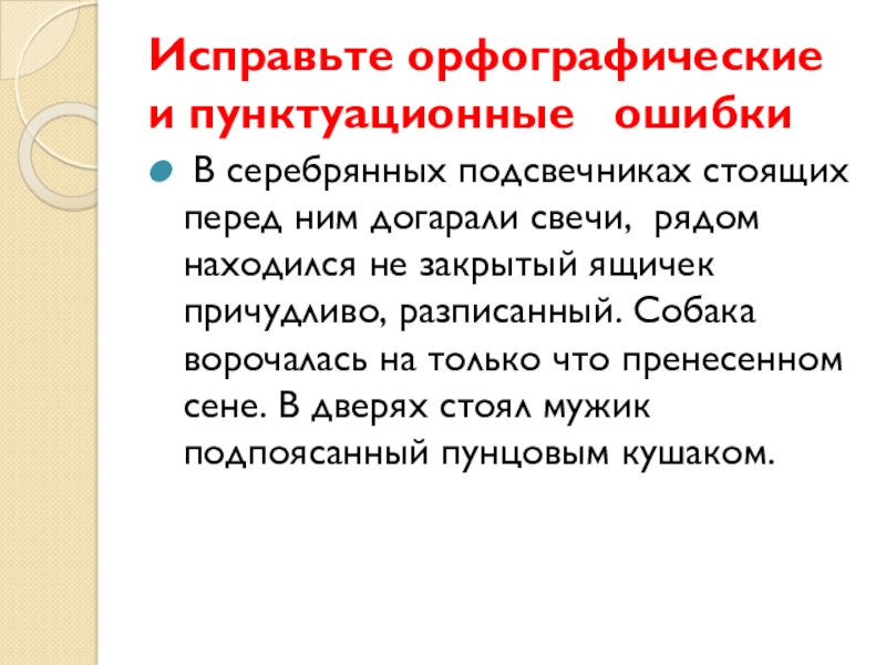 Слайд 18Исправьте орфографические и пунктуационные ошибки