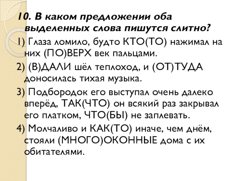 Слайд 3710. В каком предложении оба выделенных слова пишутся слитно?