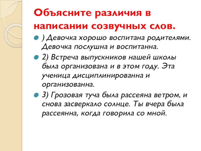 Слайд 358. Укажите номер ответа, в котором написание выделенного слова объяснено верно.