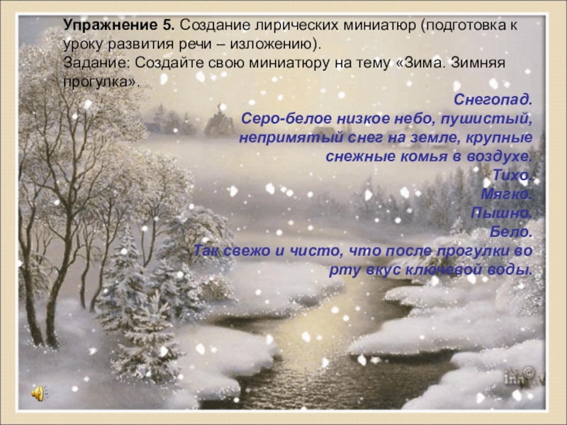 Упражнение 5. Создание лирических миниатюр (подготовка к уроку развития речи – изложению).