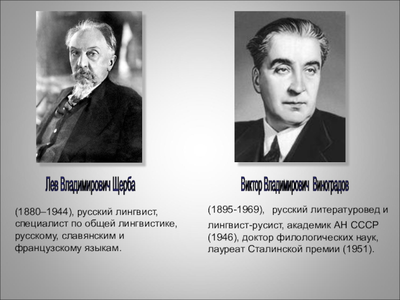 (1895-1969), русский литературовед и лингвист-русист, академик АН СССР (1946), доктор филологических наук, лауреат Сталинской премии (1951).