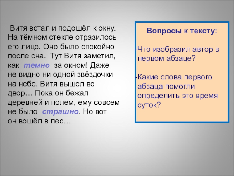 как темно за окном! Даже не видно ни одной звёздочки на небе. Витя вышел во