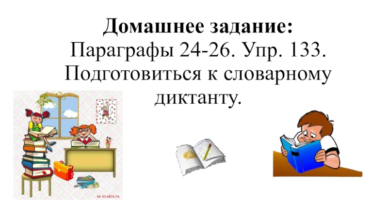 Слайд 33Домашнее задание: Параграфы 24-26. Упр. 133. Подготовиться к словарному диктанту.