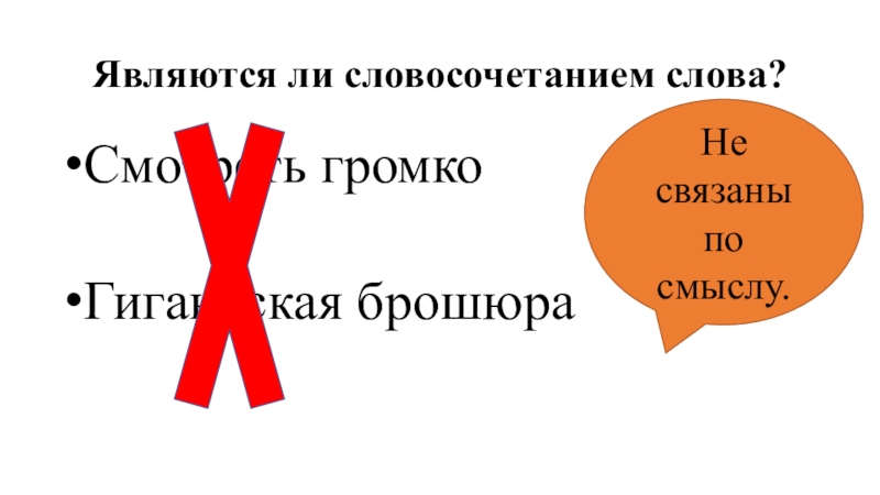 Являются ли словосочетанием слова?Смотреть громкоГигантская брошюраНе связаны по смыслу.
