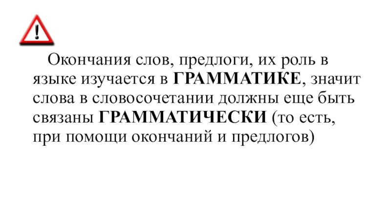 Окончания слов, предлоги, их роль в языке изучается в ГРАММАТИКЕ, значит слова в словосочетании должны еще быть