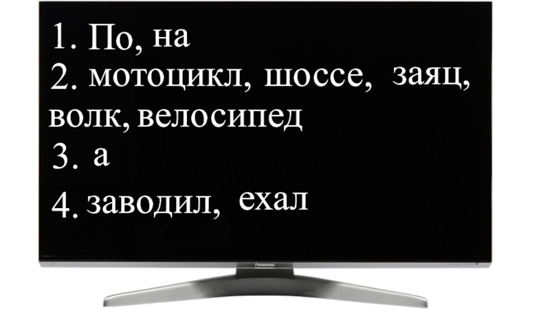 По, мотоцикл,а1. 2. 3. 4. шоссе,заяц,волк,велосипедназаводил,ехал