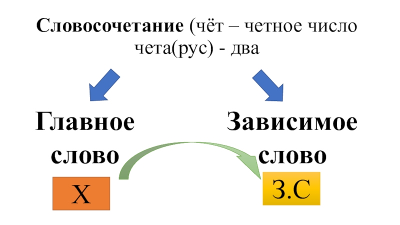 Словосочетание (чёт – четное число чета(рус) - дваГлавное словоЗависимоесловоХЗ.С
