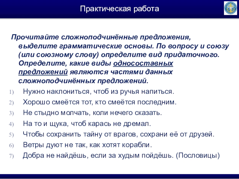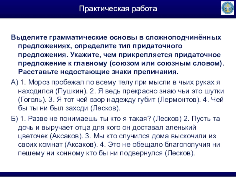 Прочитайте сложноподчинённые предложения, выделите грамматические основы. По вопросу и союзу