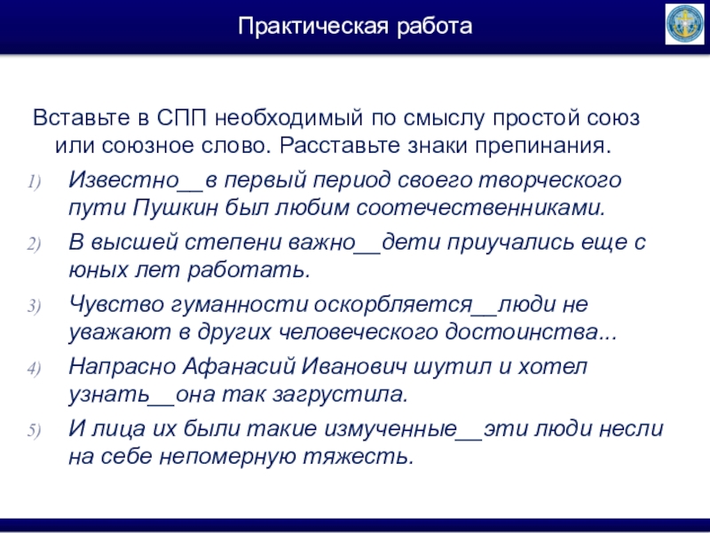 Вставьте в СПП необходимый по смыслу простой союз или союзное