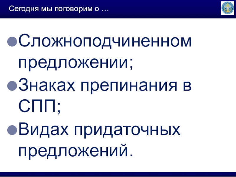 в придаточном предложении – подчинительные союзы (что, чтобы, ибо, пока, когда, как, если и др.) или союзные слова (который, какой, кто, что, как, где, куда, откуда, когда и др.);