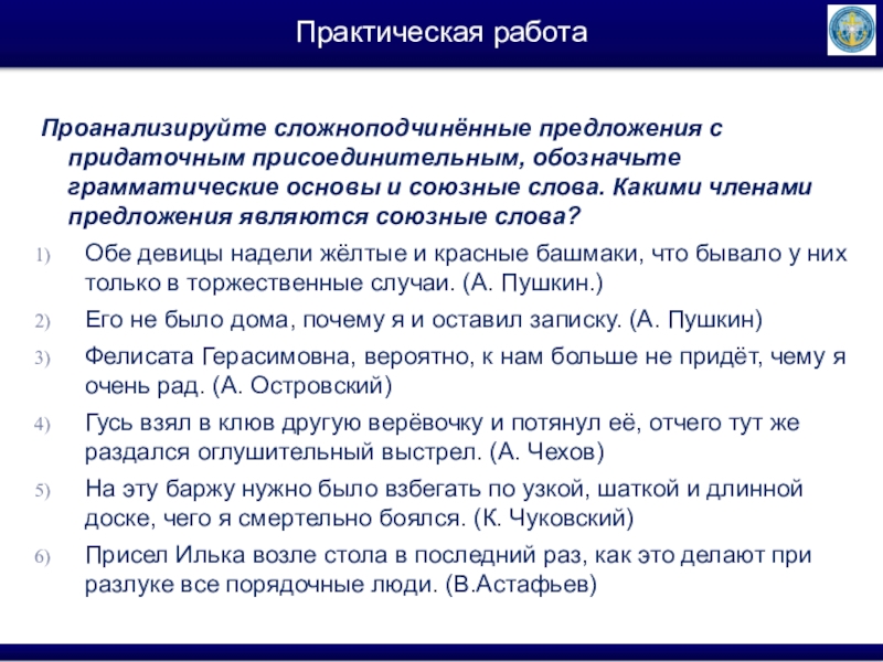 Проанализируйте сложноподчинённые предложения с придаточным присоединительным, обозначьте грамматические основы и