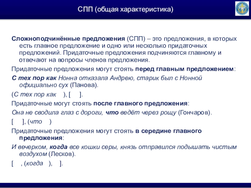 Сложноподчинённые предложения (СПП) – это предложения, в которых есть главное