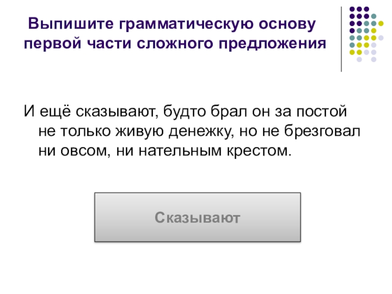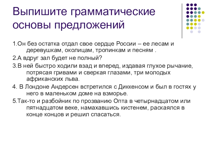 Слайд 8Найдите грамматическую основу, определите, чем выражены главные члены.
