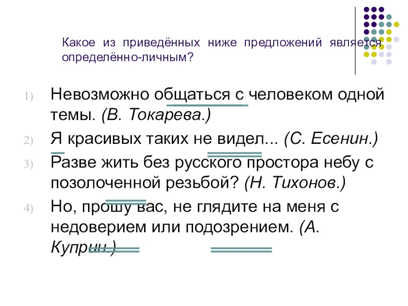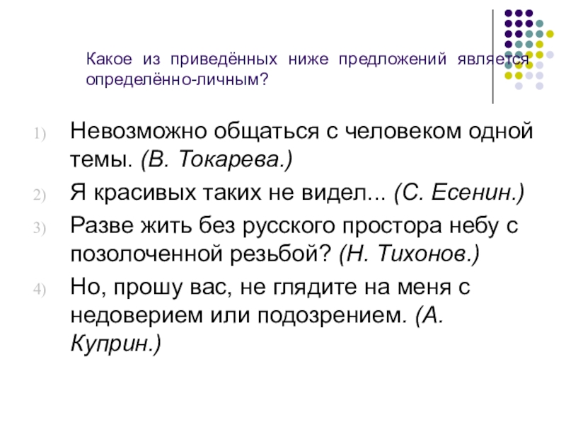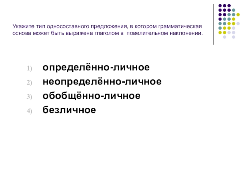 Слайд 52Какое из приведённых ниже предложений является определённо-личным?
