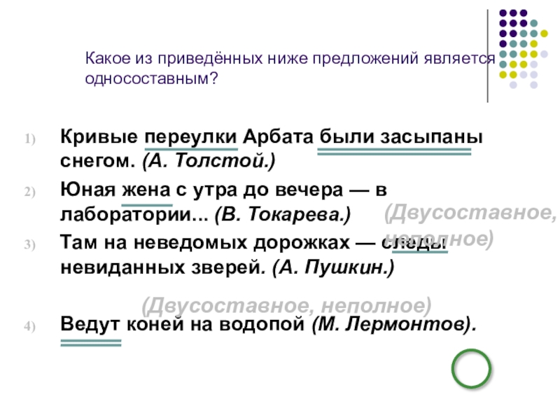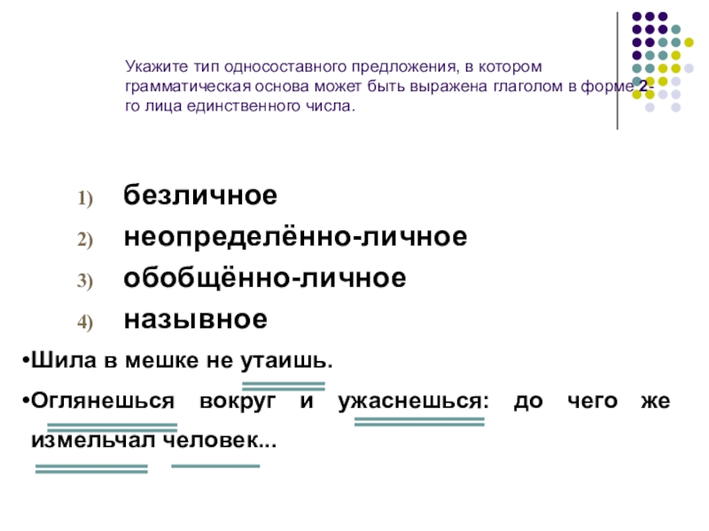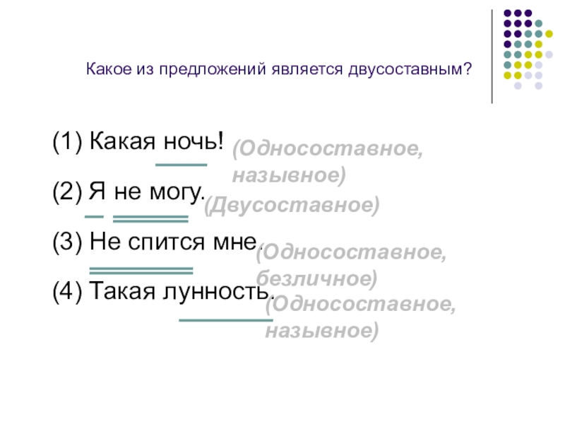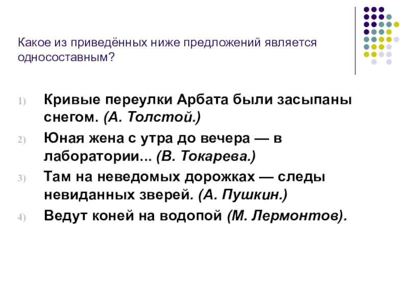 Слайд 44Какое из приведённых ниже предложений является односоставным?