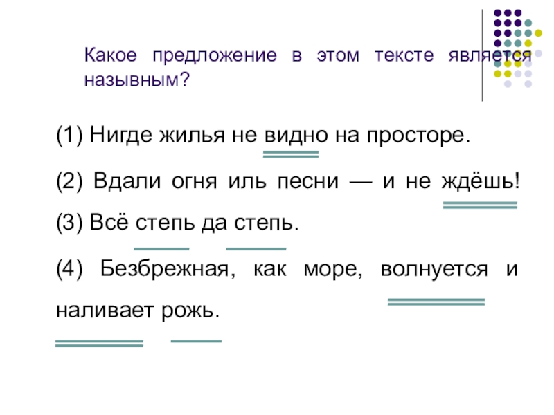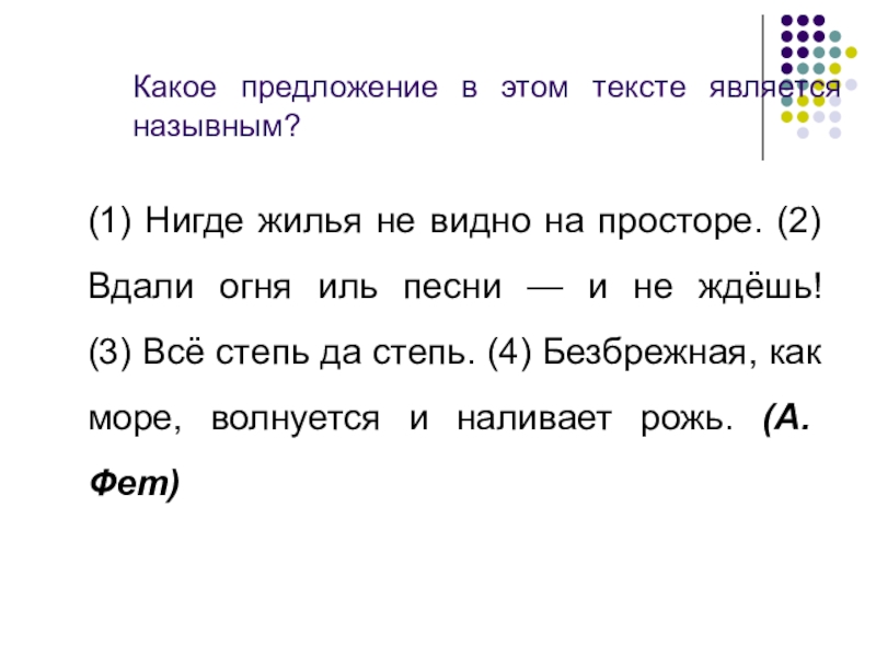 Слайд 51Какое(ие) предложение(я) в этом тексте является назывным?