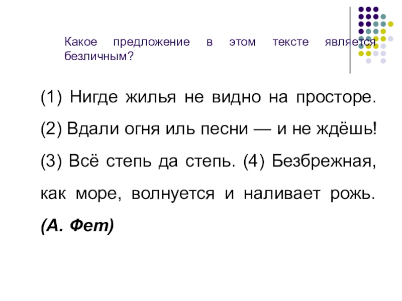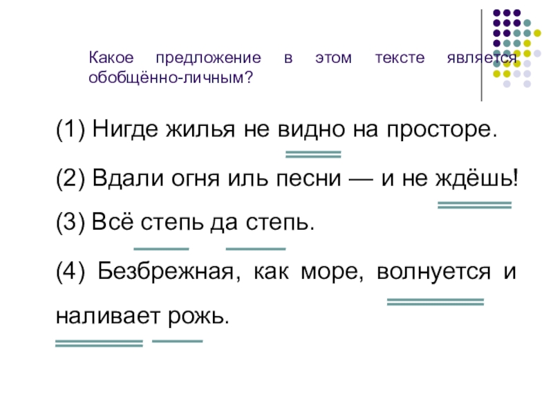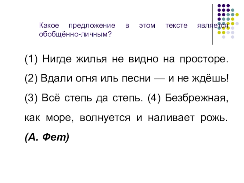 Слайд 59Какое предложение в этом тексте является обобщённо-личным?