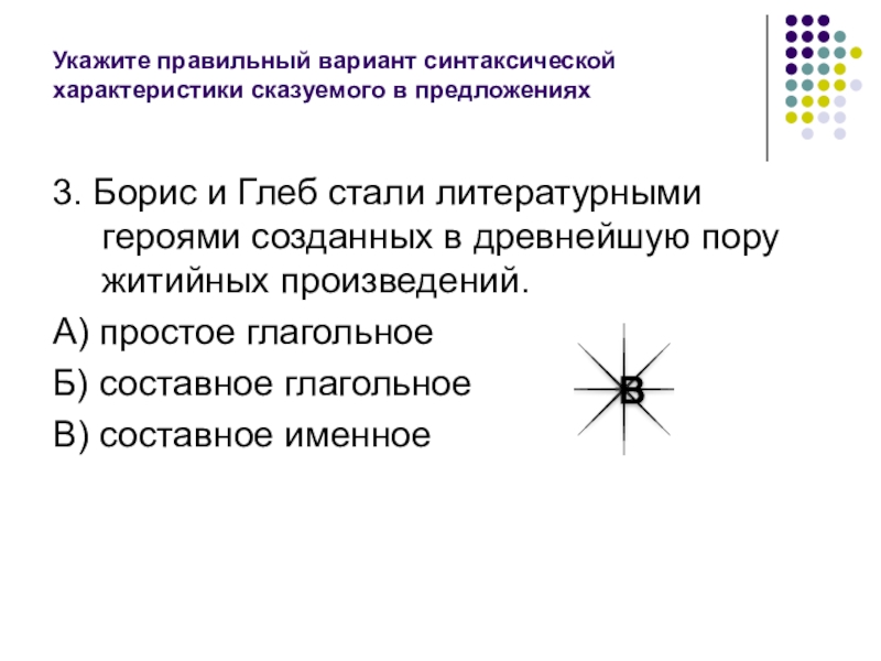 Слайд 9Укажите правильный вариант синтаксической характеристики сказуемого в предложениях