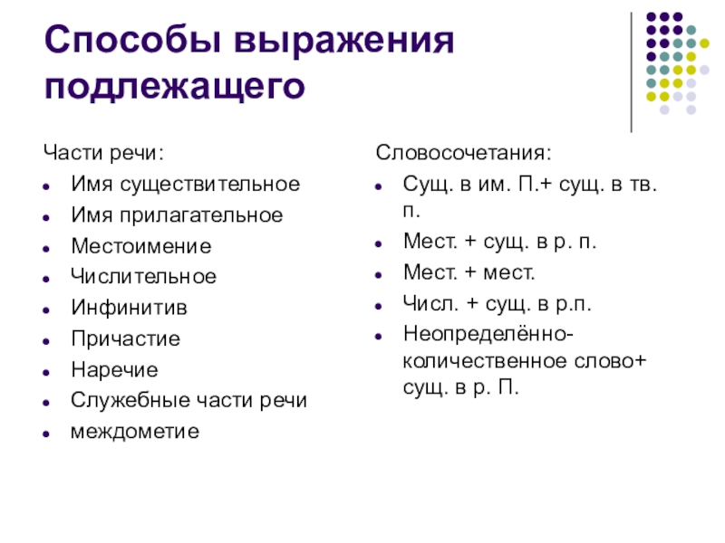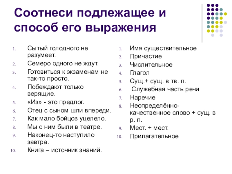 Слайд 6Соотнеси подлежащее и способ его выражения