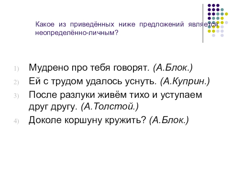 Слайд 54Какое из приведённых ниже предложений является неопределённо-личным?