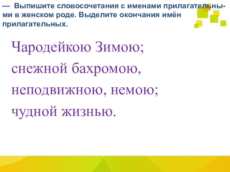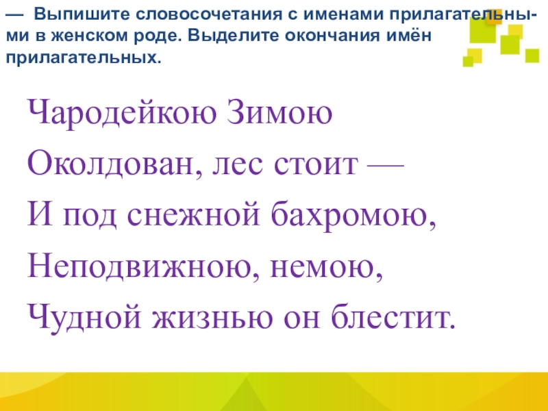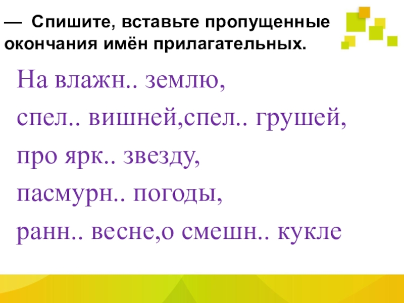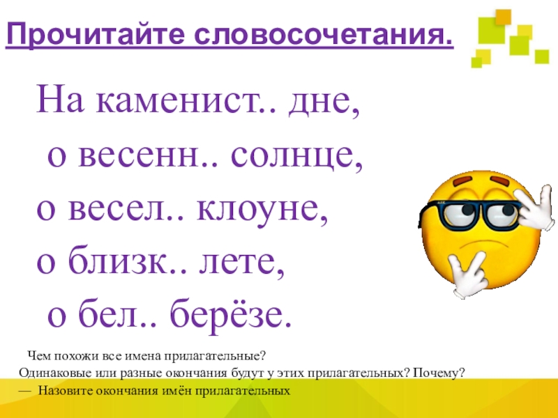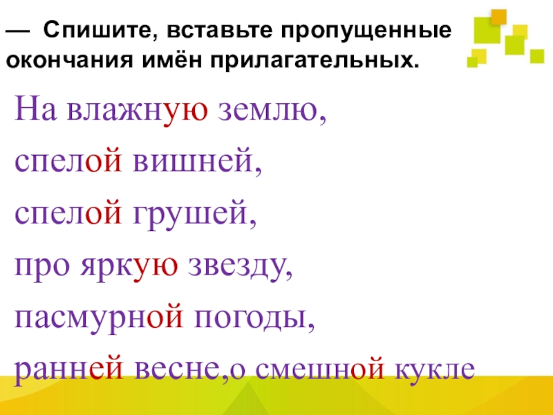 — Назовите окончания имён прилагательных