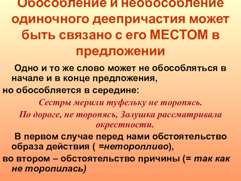 Одно и то же слово может не обособляться в начале и в конце предложения,