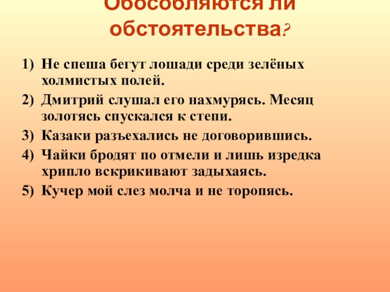 В первом случае перед нами обстоятельство образа действия ( =неторопливо),