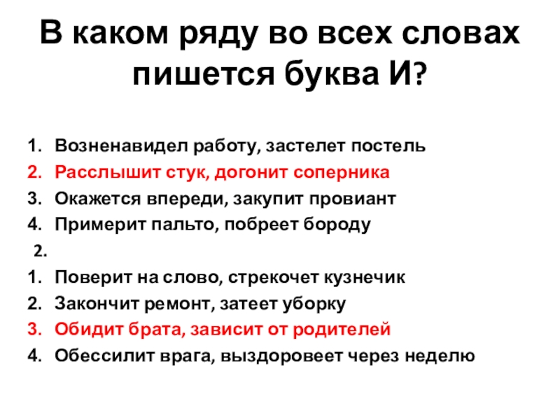 Слайд 22В каком ряду во всех словах пишется буква И?