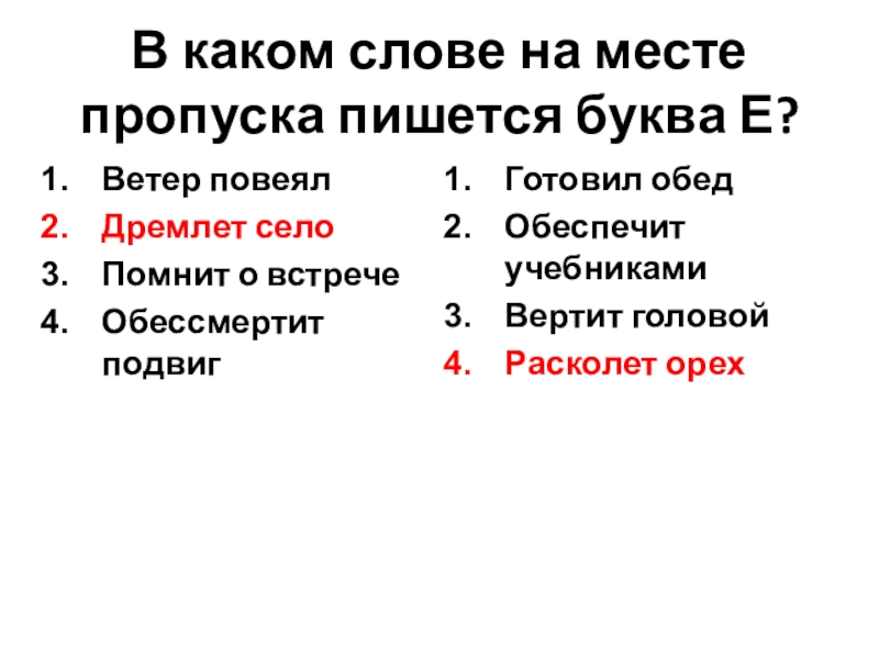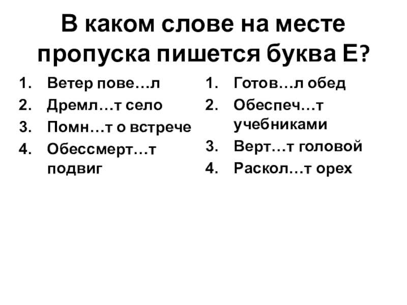Слайд 24В каком слове на месте пропуска пишется буква Е?