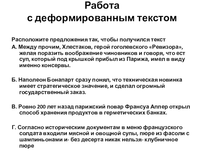 Г. Между прочим, Хлестаков, герой гоголевского «Ревизора», желая поразить воображение чиновников и говоря, что ест суп, который под крышкой прибыл их Парижа, имел в виду именно консервы.