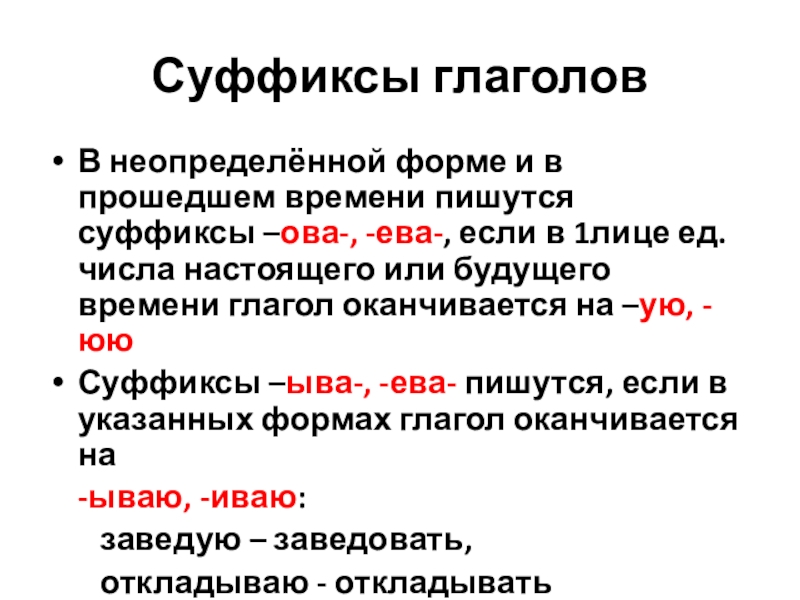 В неопределённой форме и в прошедшем времени пишутся суффиксы –ова-,