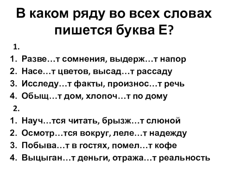 Слайд 17В каком ряду во всех словах пишется буква Е?