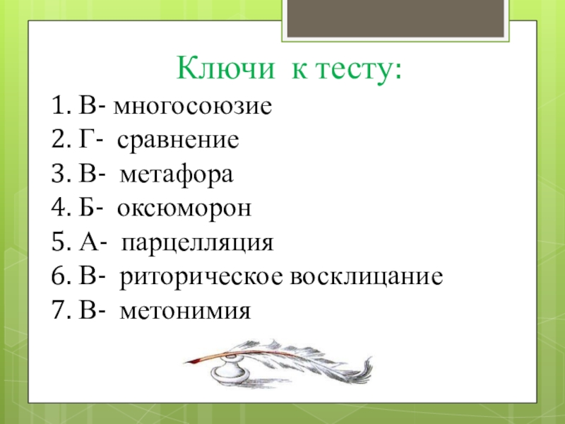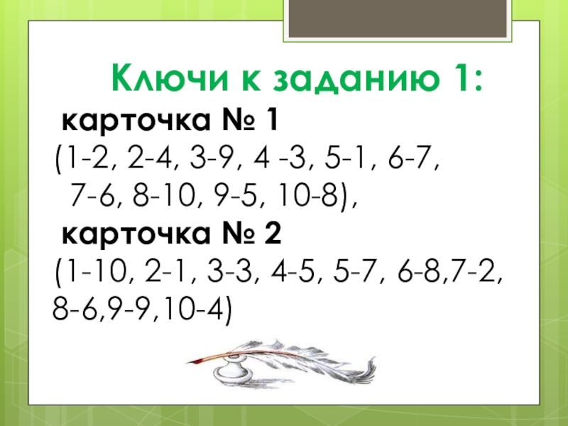 Слайд 6 Ключи к заданию 1: