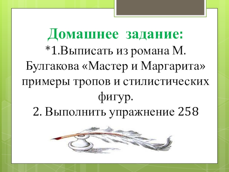 *1.Выписать из романа М.Булгакова «Мастер и Маргарита» примеры тропов