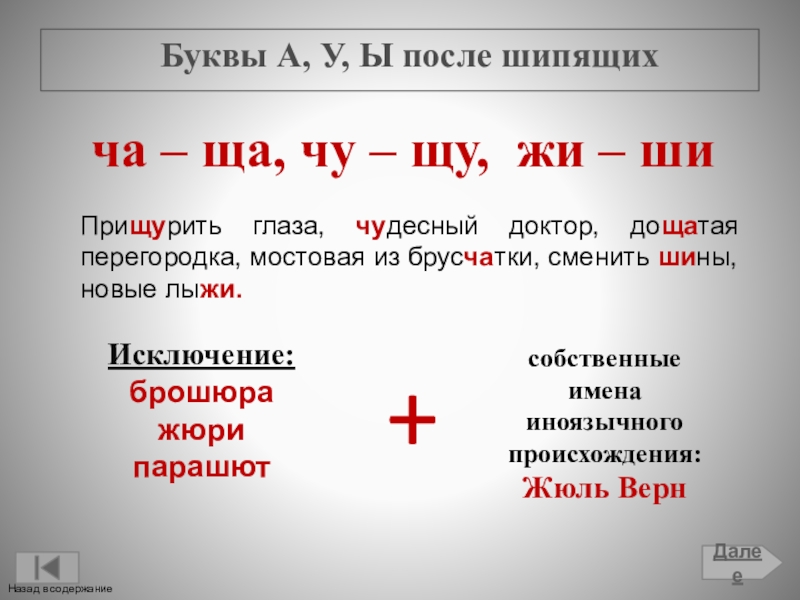 Буквы А, У, Ы после шипящих