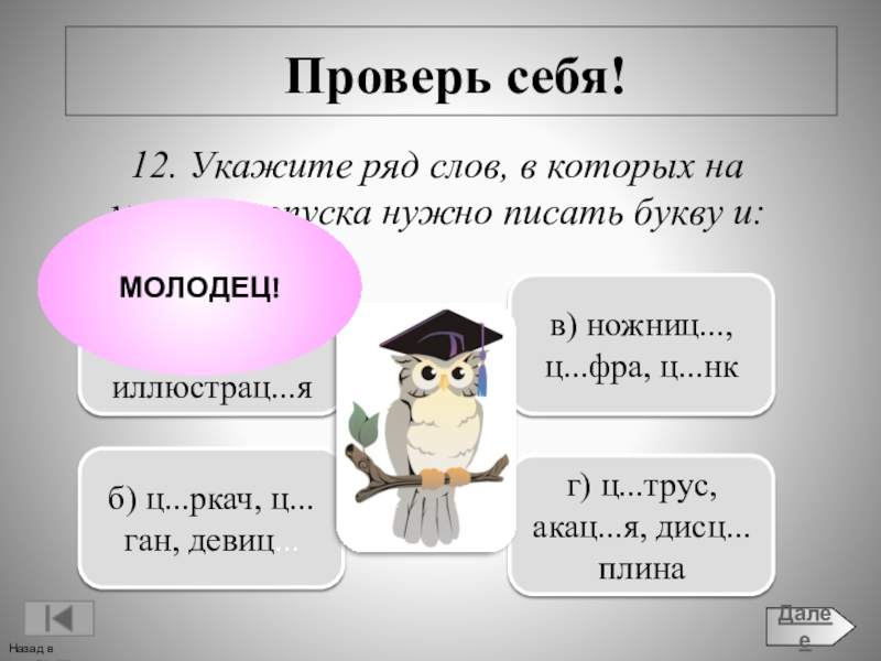 г) ц...трус, акац...я, дисц...плина