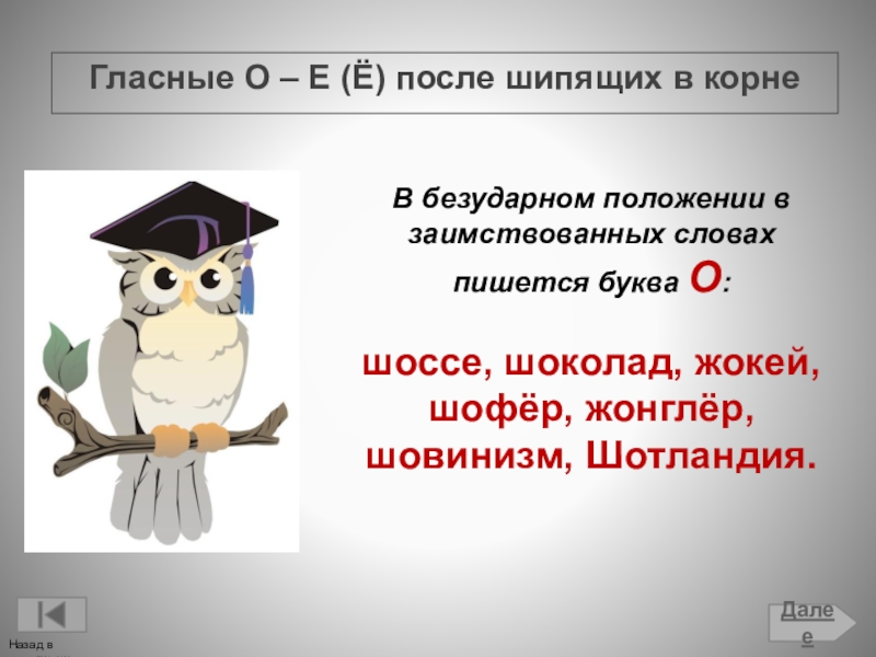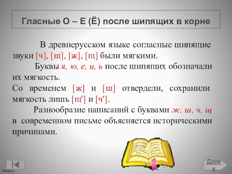 Гласные О – Е (Ё) после шипящих в корне