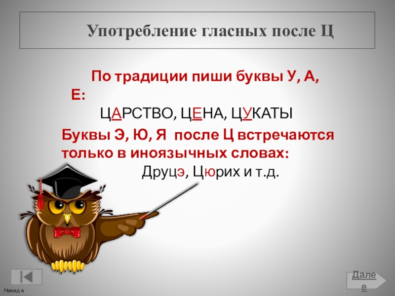 Употребление гласных после Ц